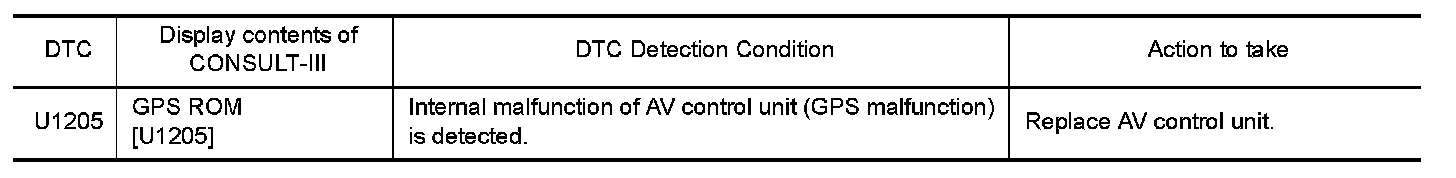 Replace the AV control unit if this DTC is displayed. Refer to With Mobile Entertainment System.
