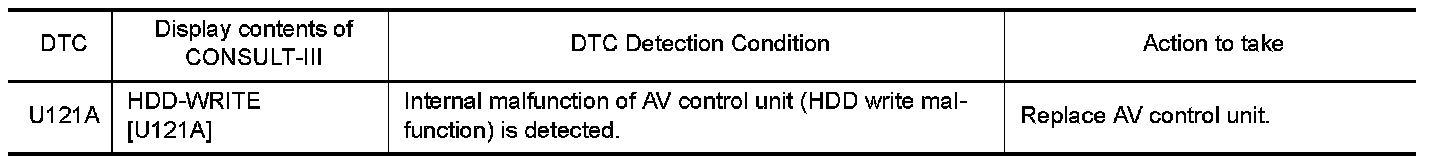 Replace the AV control unit if this DTC is displayed. Refer to