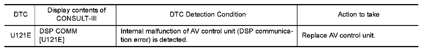 Replace the AV control unit if this DTC is displayed. Refer to
