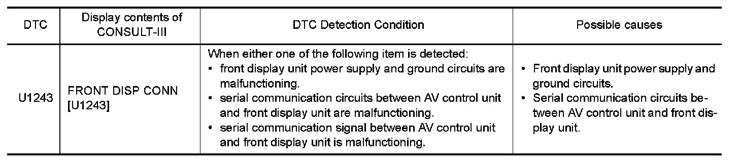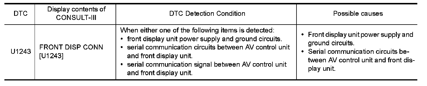 Check front display unit power supply and ground circuit. Refer to Without Mobile Entertainment System.