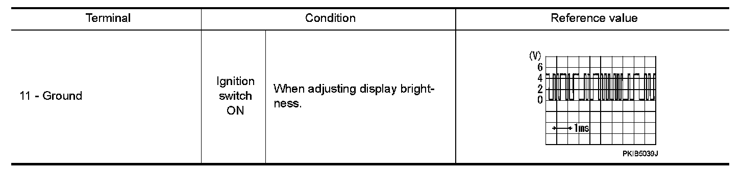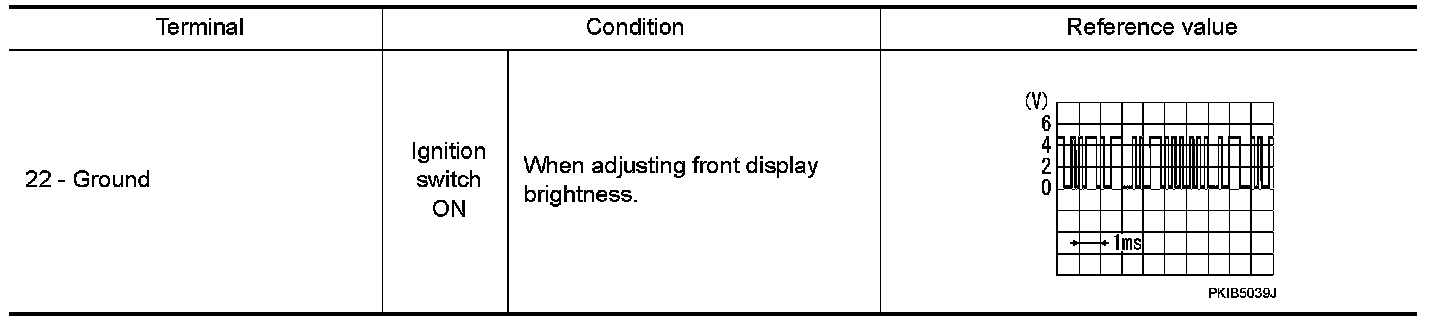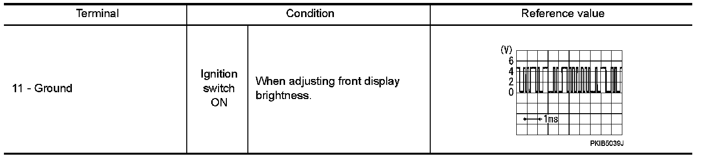 3. Check signal between front display unit harness connector terminal 11 and ground.