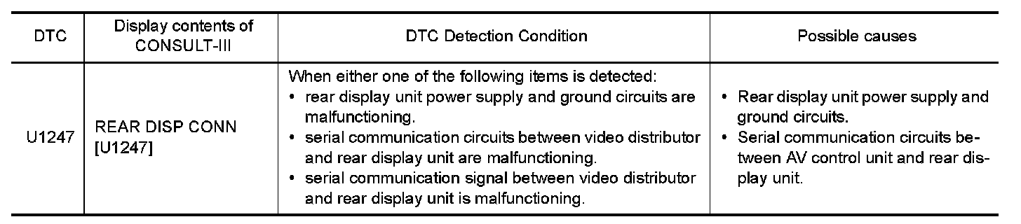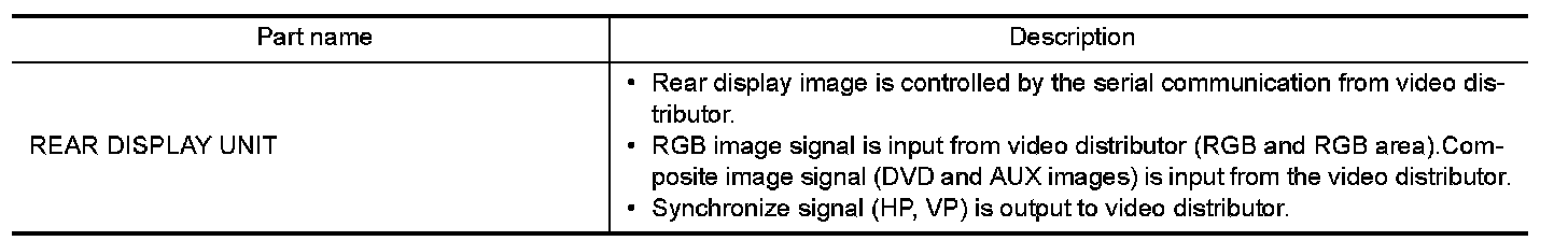 Check rear display unit power supply and ground circuits. Refer to Rear Display Unit.