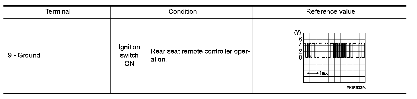 3. Check signal between rear display unit harness connector terminal 9 and ground.