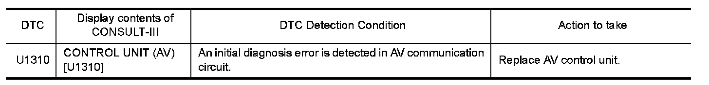 Replace the AV control unit if this DTC is displayed. Refer to