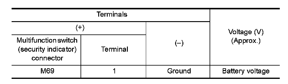 3. Check voltage between multifunction switch (security indicator) connector and ground.