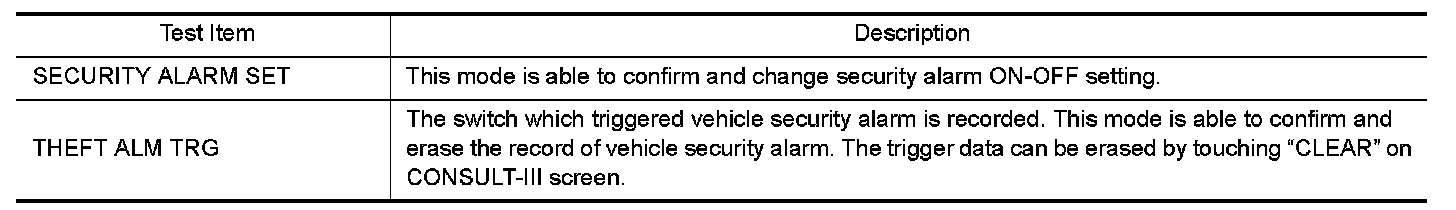 CONSULT-III Function (BCM-THEFT ALM)