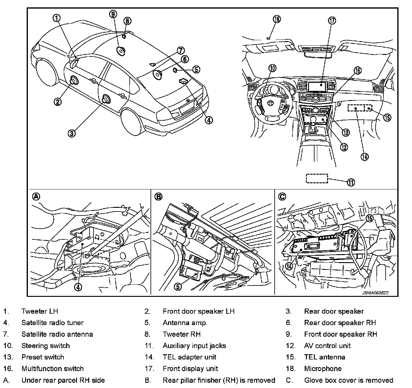 WITHOUT NAVIGATION : Component Parts Location