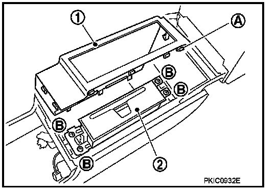 5. Remove screws (B) and remove DVD player (2).