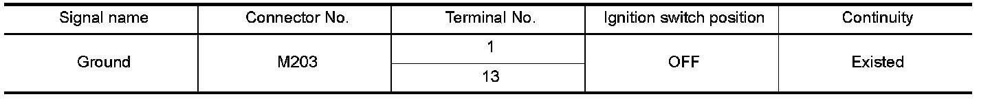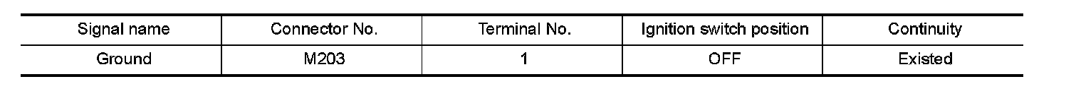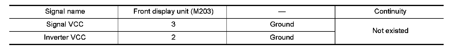 4. Check continuity between front display unit harness connector M203 and ground.