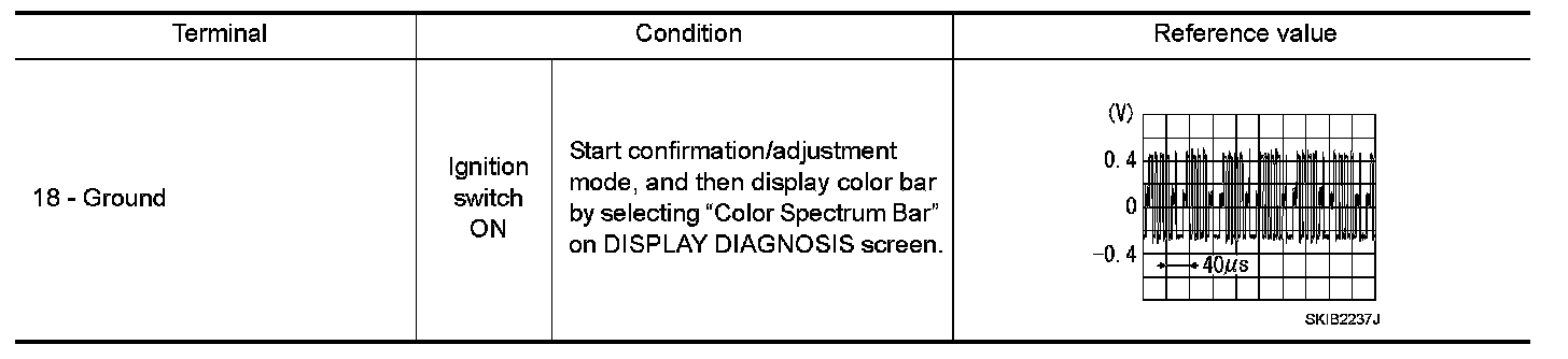 3. Check signal between front display unit harness connector terminal 18 and ground.