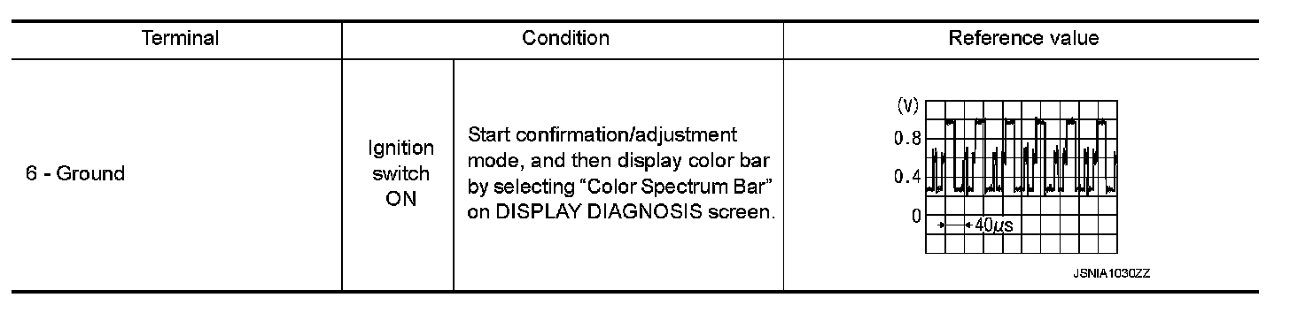 3. Check signal between front display unit harness connector terminal 6 and ground.