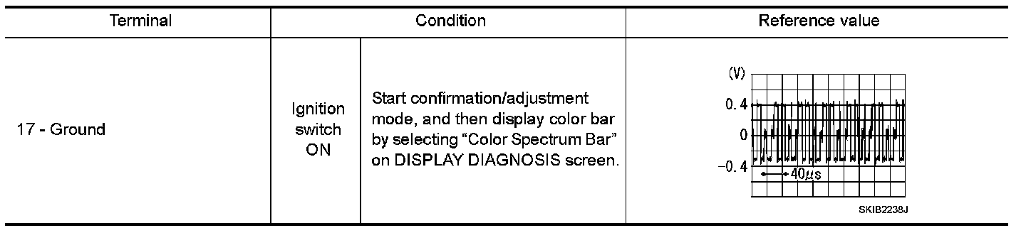 3. Check signal between front display unit harness connector terminal 17 and ground.