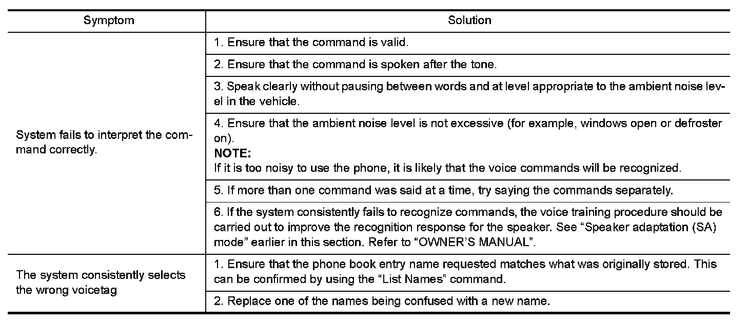 The system should respond correctly to all voice commands without difficulty. If problems are encountered, try the following solutions.