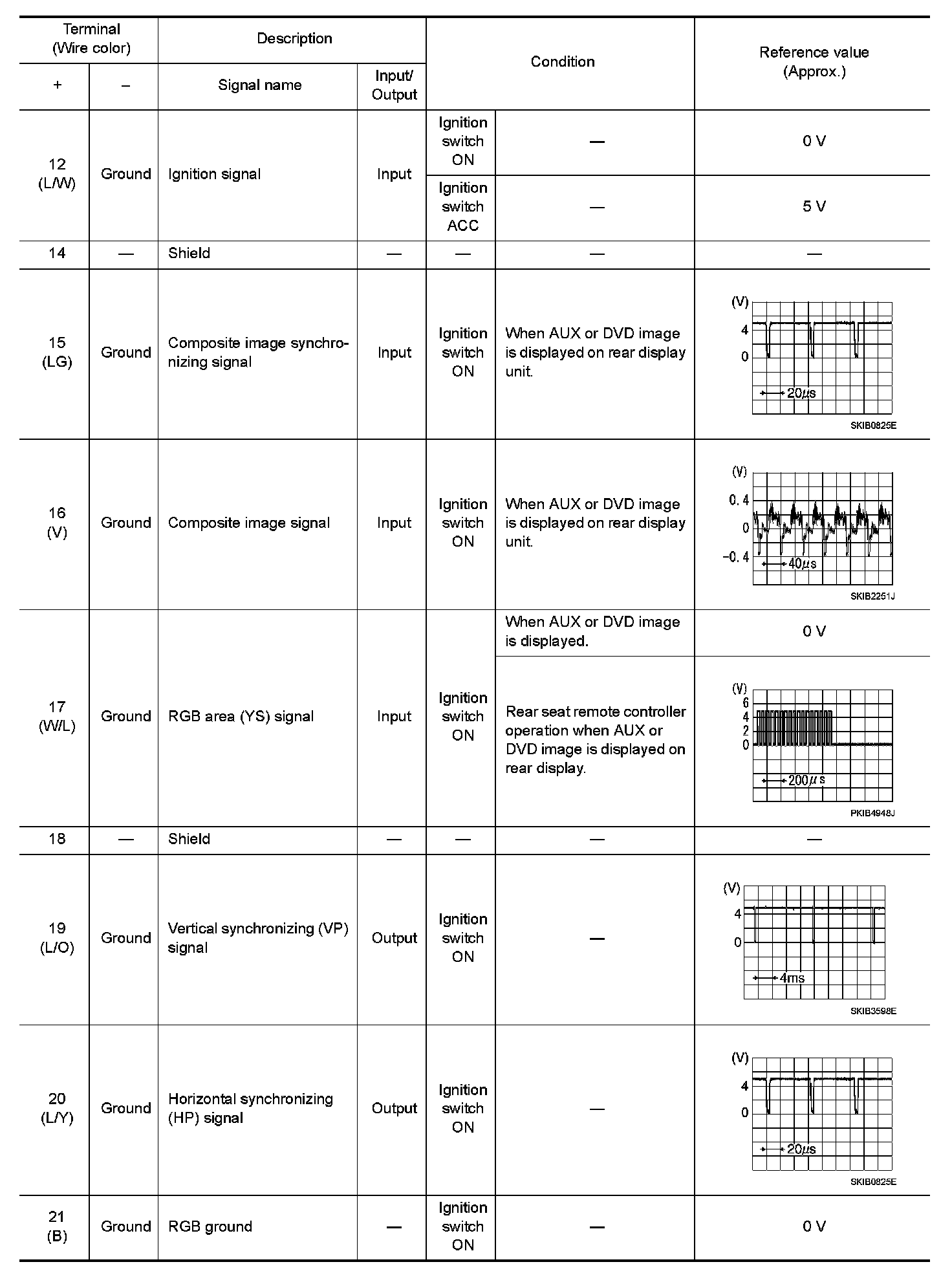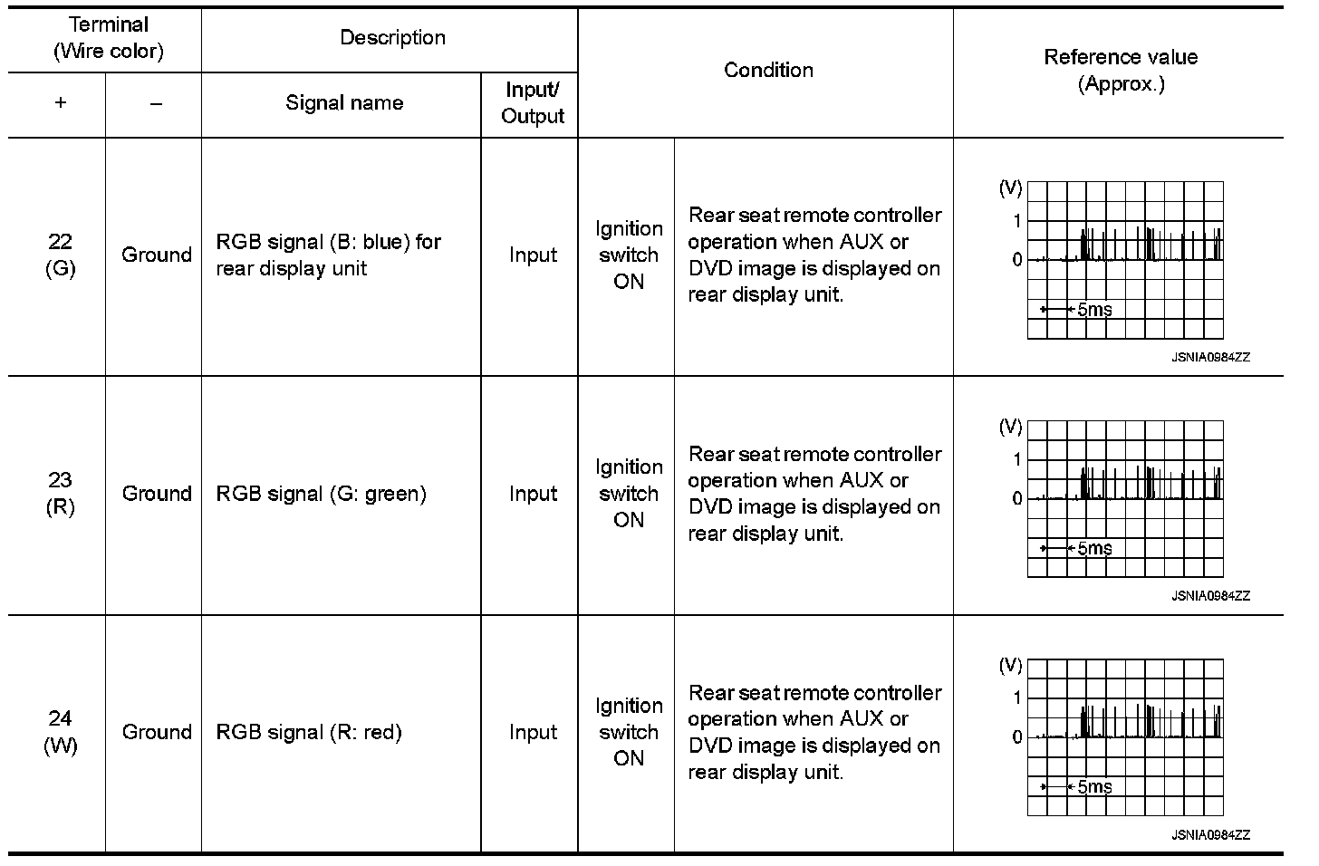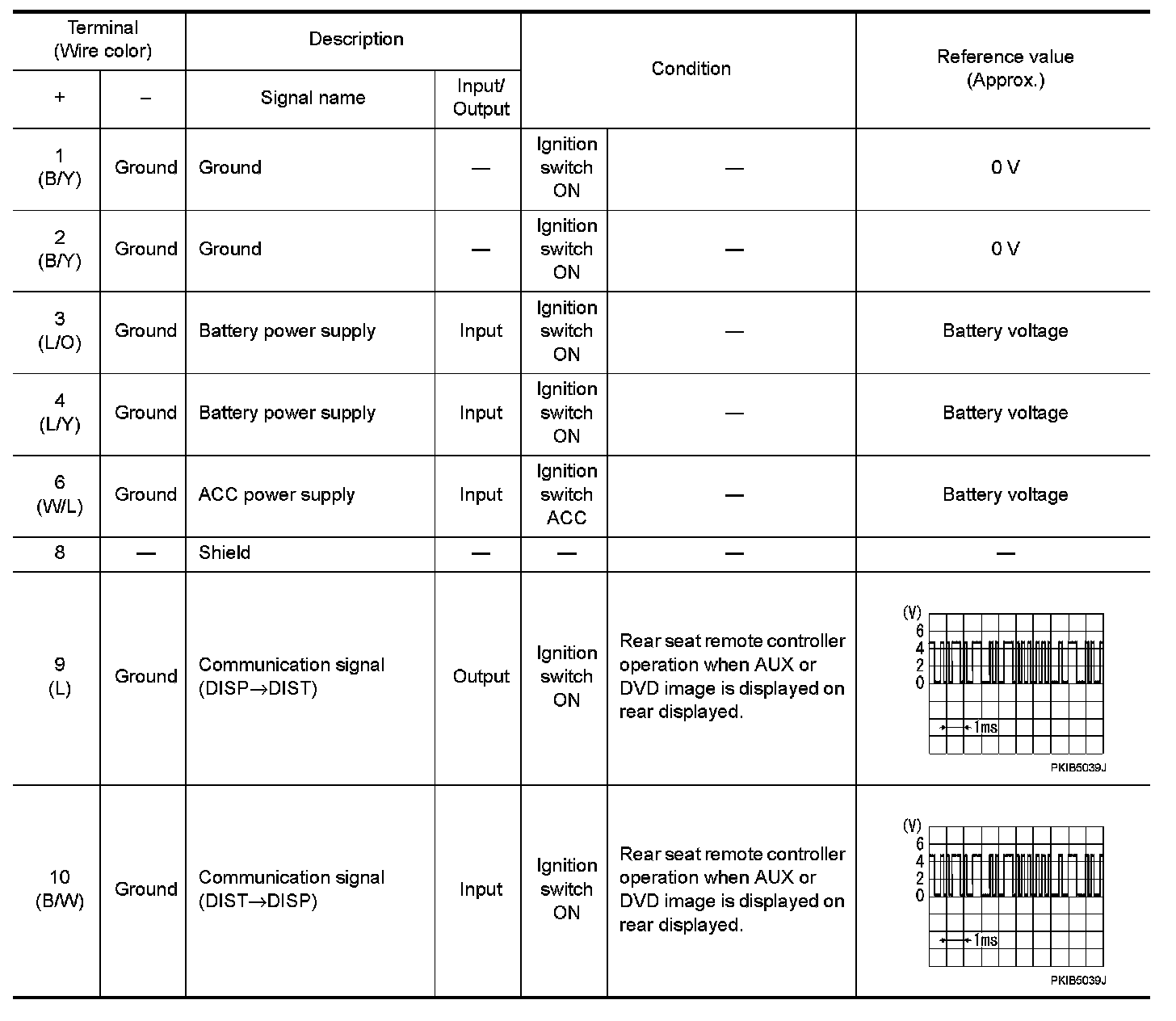 Pinout Values and Diagnostic Parameters