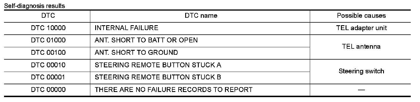 During on board diagnosis the diagnosis function of TEL adapter unit starts with the operation of the steering switch and performs the diagnosis when ignition switch ACC.