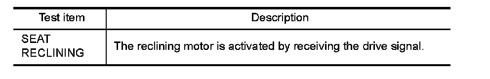 Check operation with "SEAT RECLINING" in ACTIVE TEST.