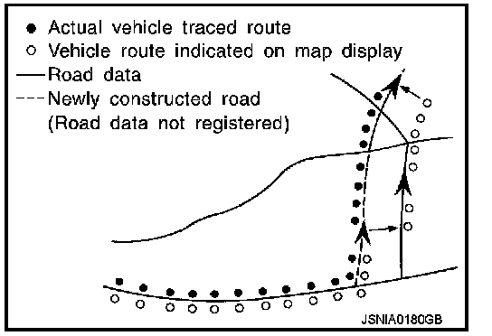 Also, map-matching does not function correctly when road pattern stored in the map data and the actual road pattern are different due to repair, etc.