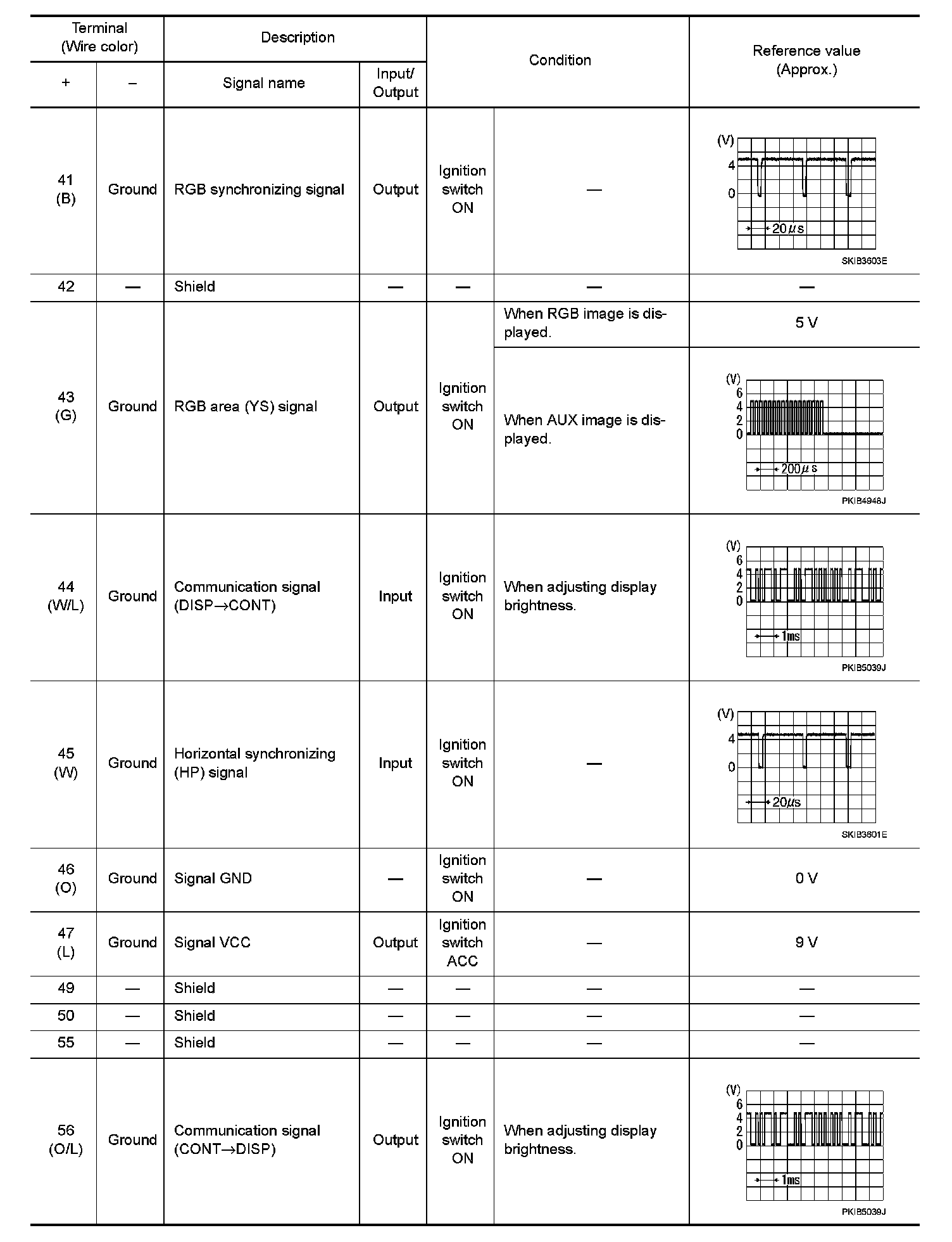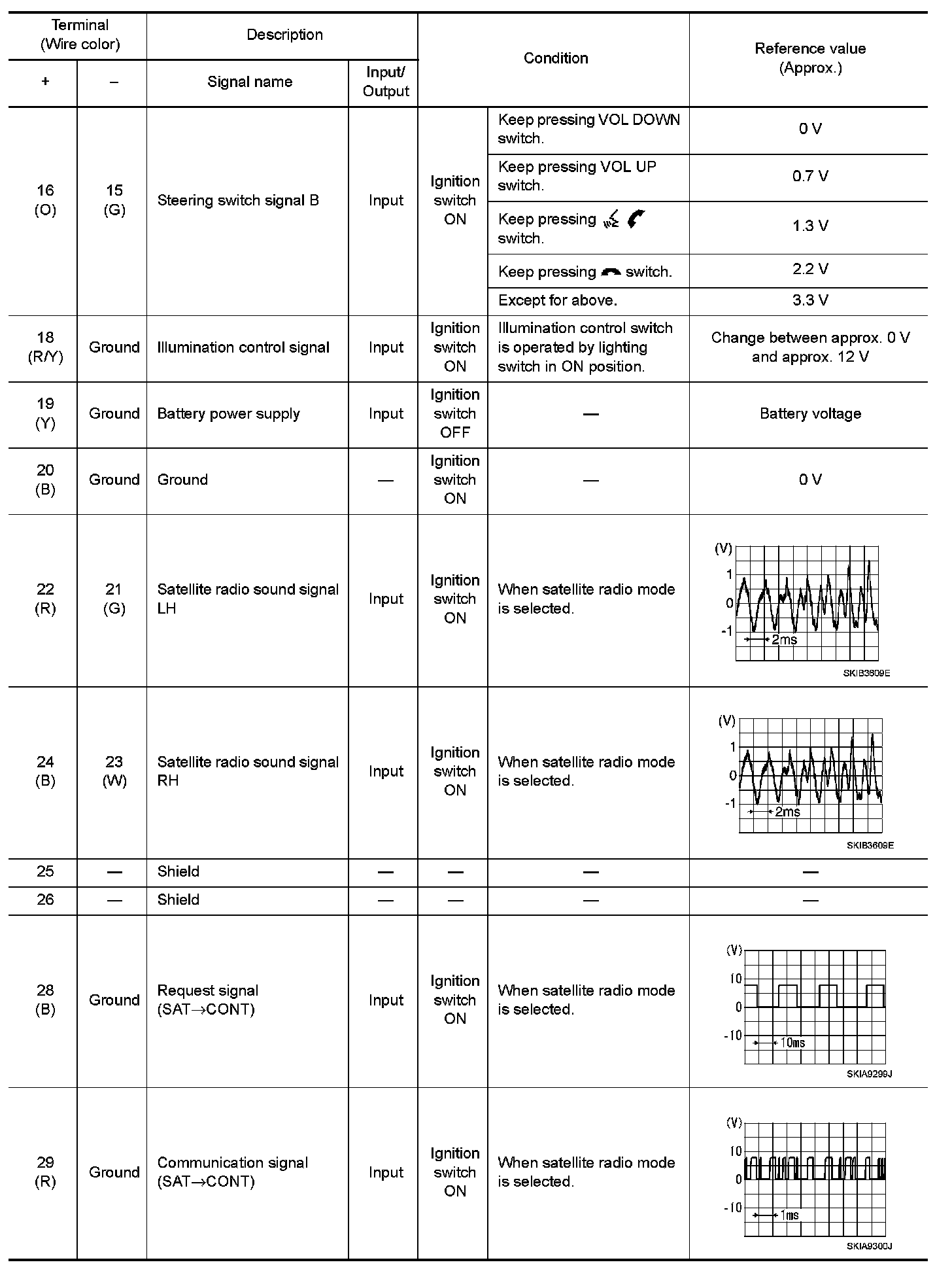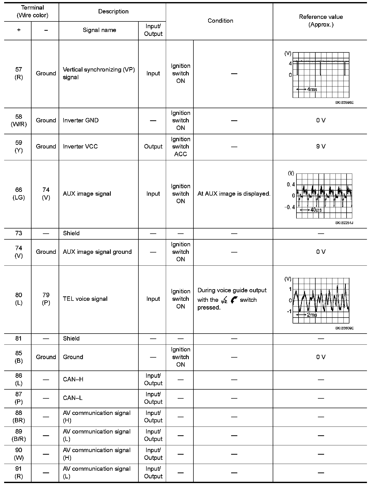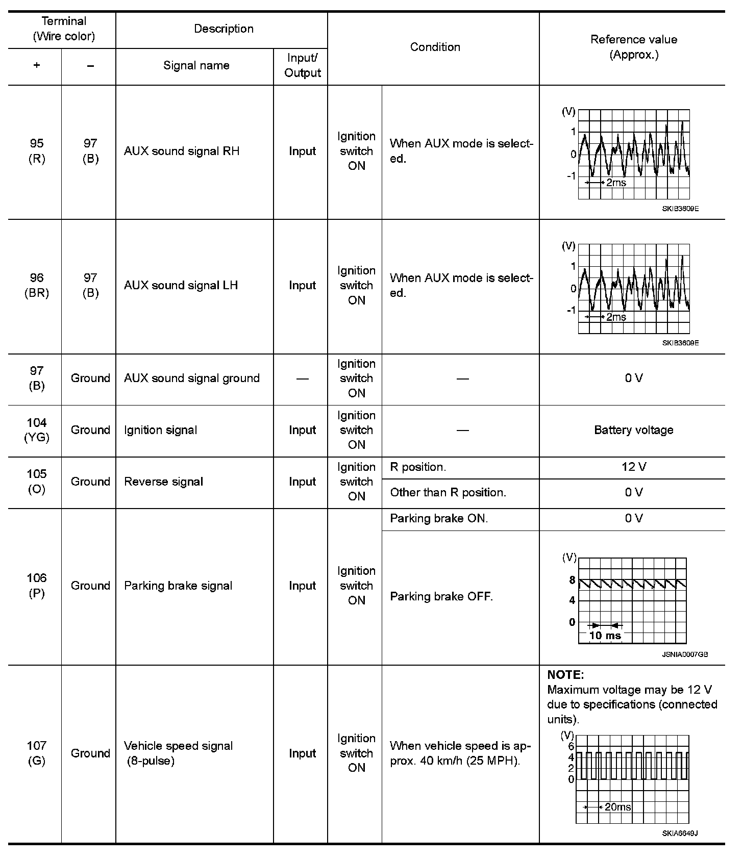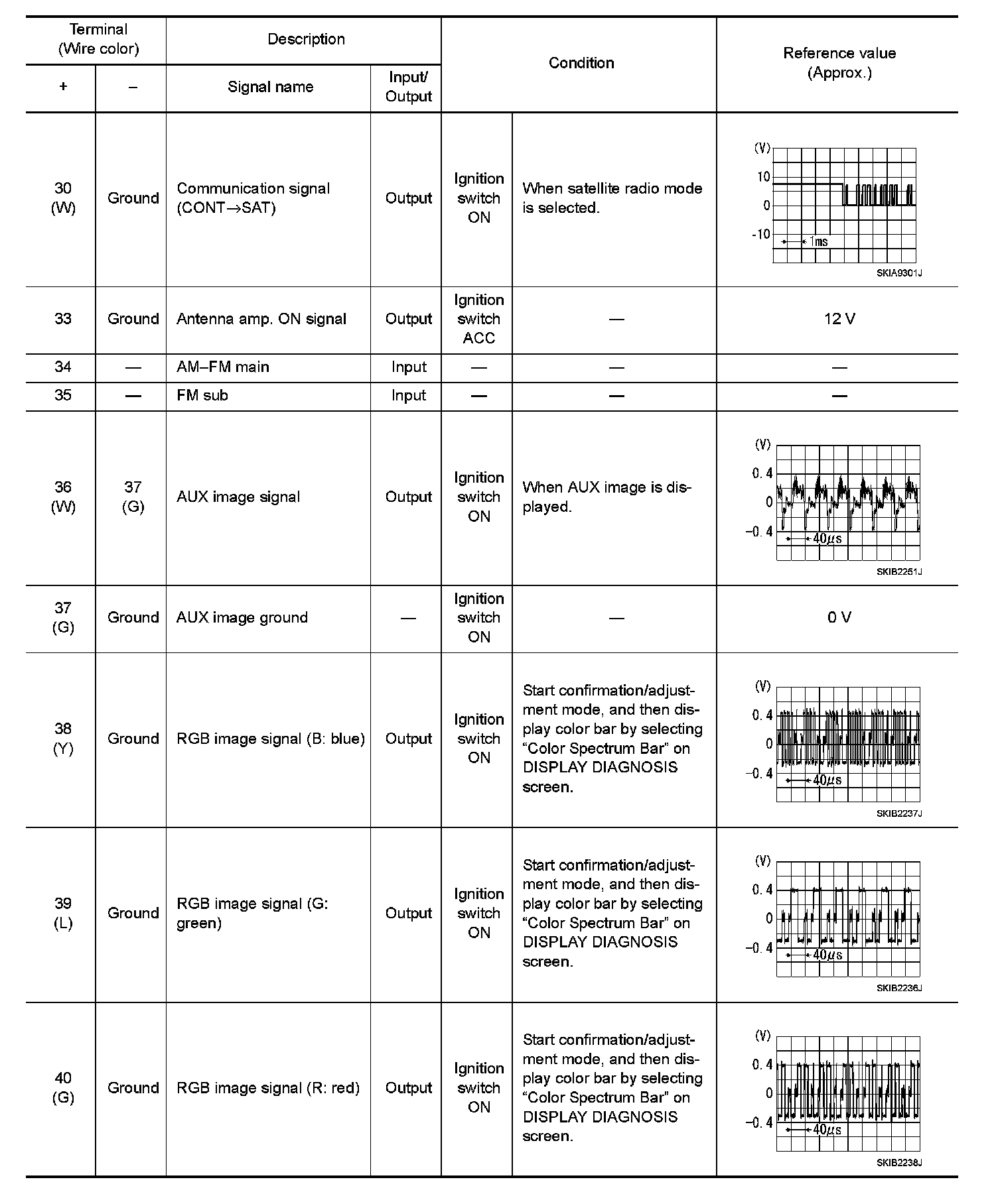 Pinout Values and Diagnostic Parameters