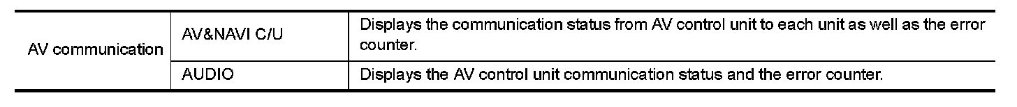 When "AV communication" of "CAN Diag Support Monitor" is selected, the following function will be performed.