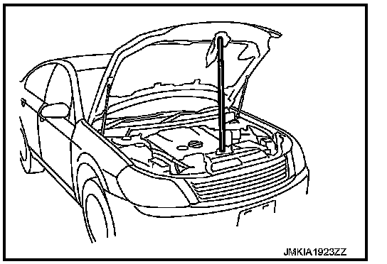 1. Support the hood lock assembly with a proper material to prevent it from falling.