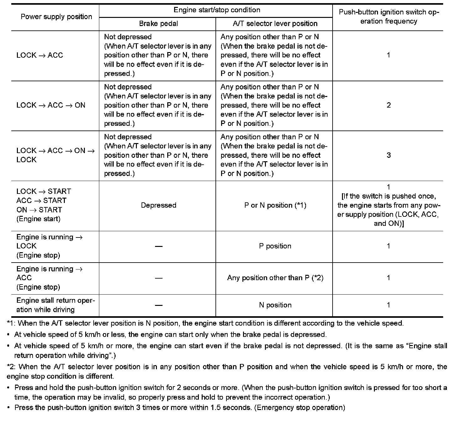 *: For the engine start condition, refer to "PUSH-BUTTON IGNITION SWITCH OPERATION PROCEDURE".
