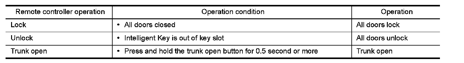When an LOCK signal is sent from Intelligent Key, all doors will be locked.