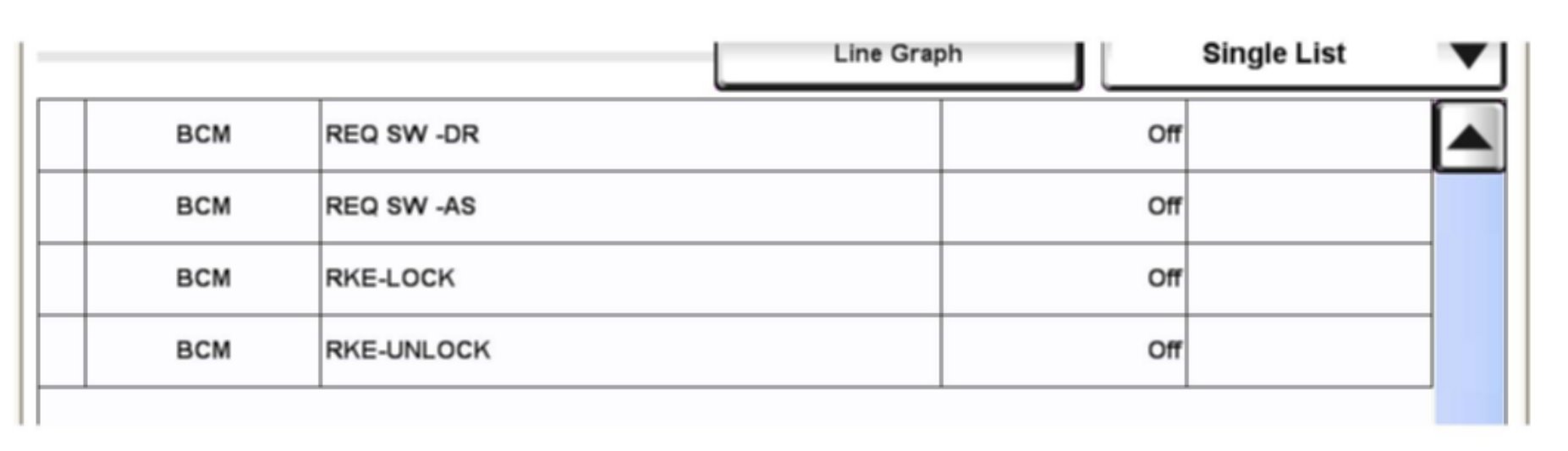 ^ REQ SW-DR/AS will change OFF > ON as Door Request Switch is pressed.