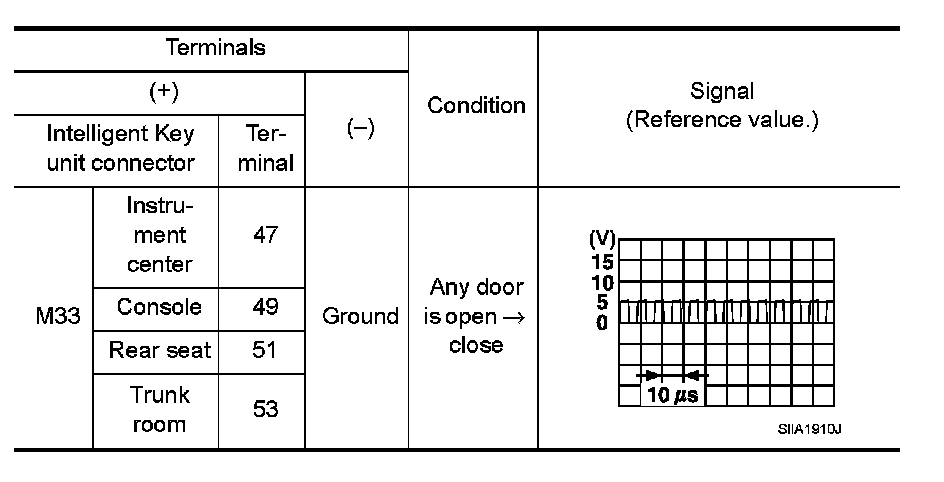 3. Check signal between Intelligent Key unit connector and ground with oscilloscope.