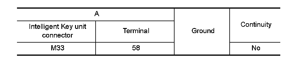 3. Check continuity between Intelligent Key unit connector and ground.