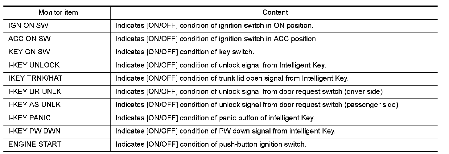 CONSULT-III Functions (BCM-INTELLIGENT KEY)