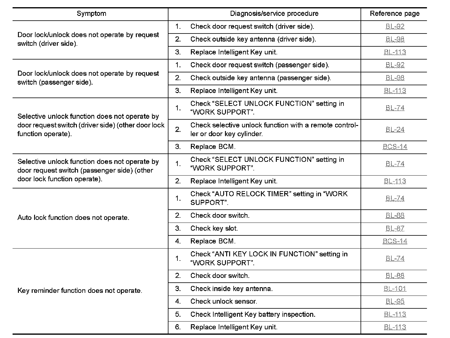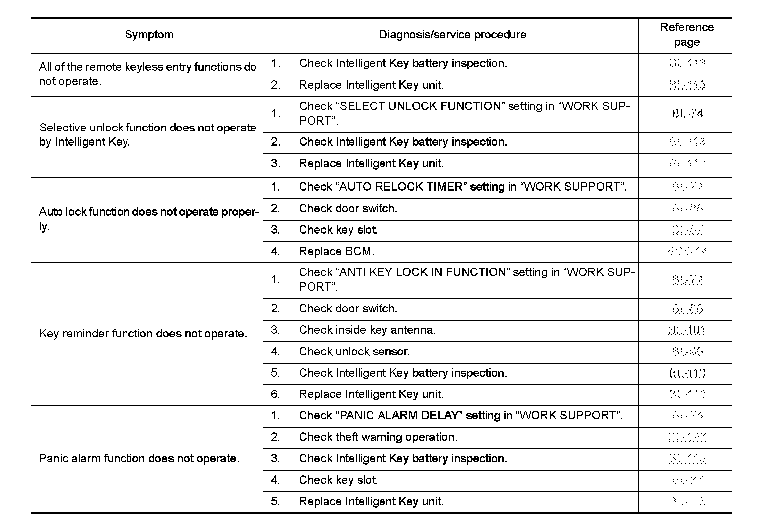 REMOTE KEYLESS ENTRY FUNCTION MALFUNCTION Symptom Chart: