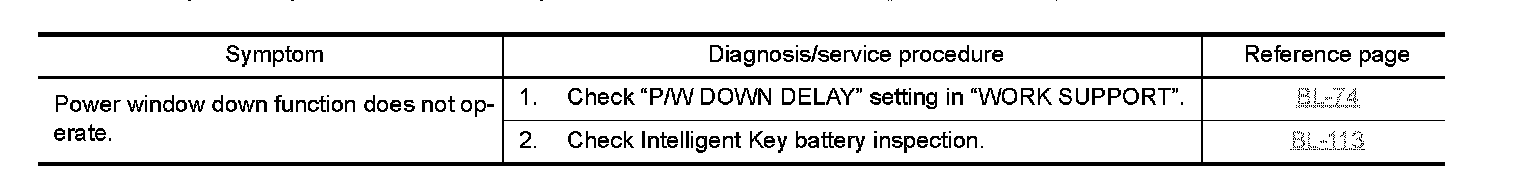 POWER WINDOW DOWN FUNCTION MALFUNCTION Symptom Chart: