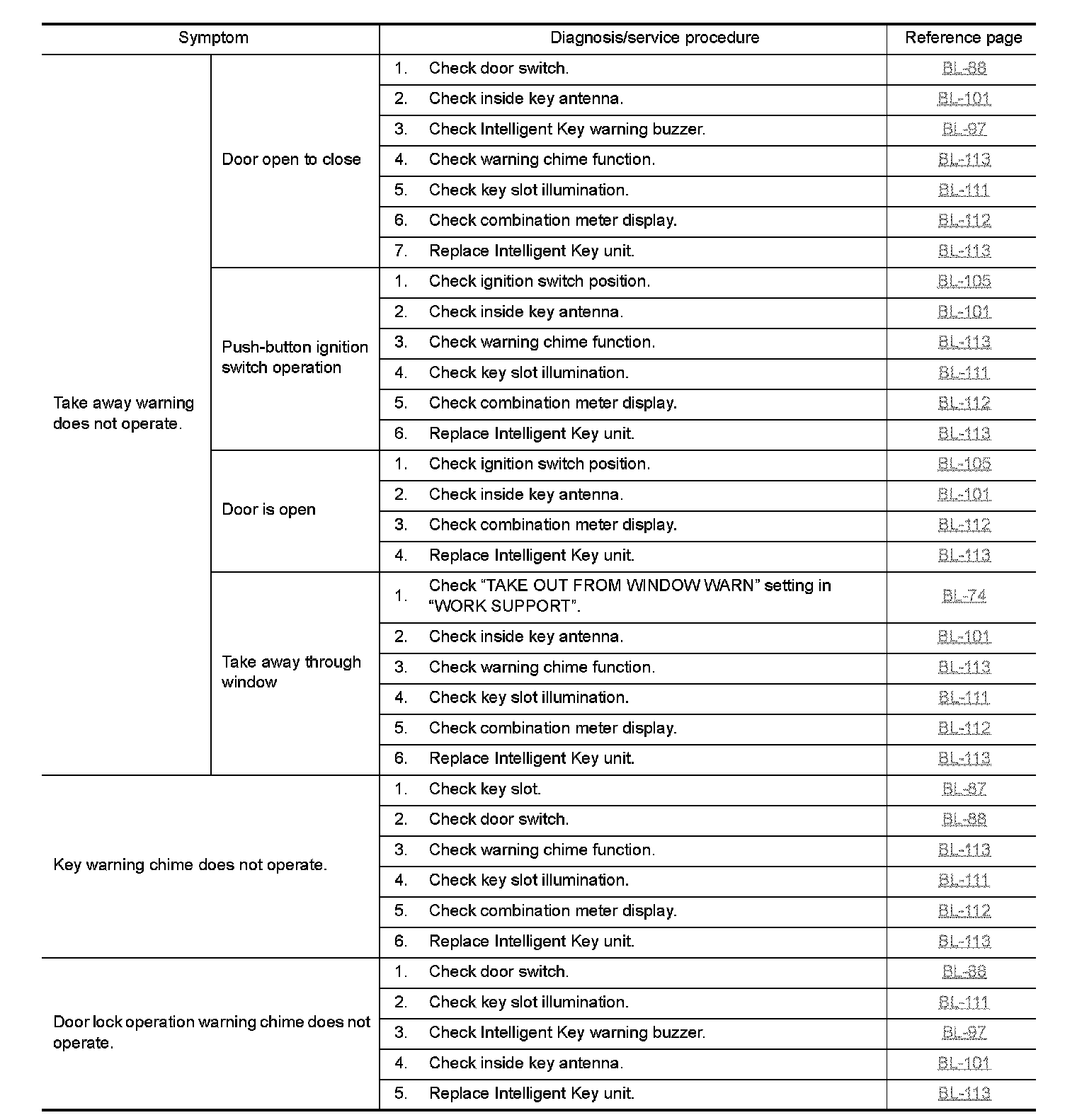 Warning chime functions operating condition is extremely complicated, during operating confirmations, reconfirm the list above twice in order to ensure proper operation.