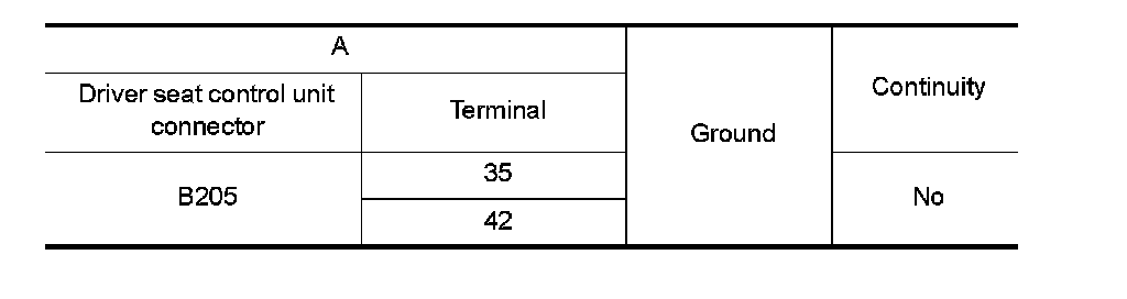 4. Check continuity between driver seat control unit connector and ground.