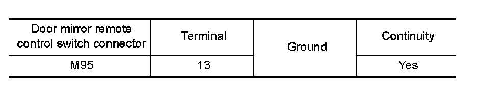 Check continuity between door mirror remote control switch connector and ground.