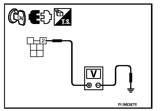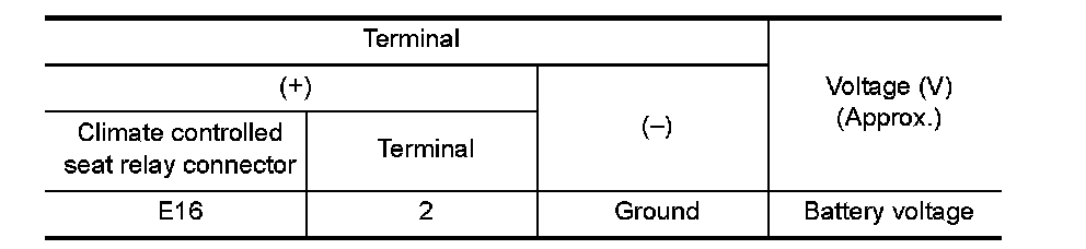 3. Check voltage between climate controlled seat relay harness connector and ground.