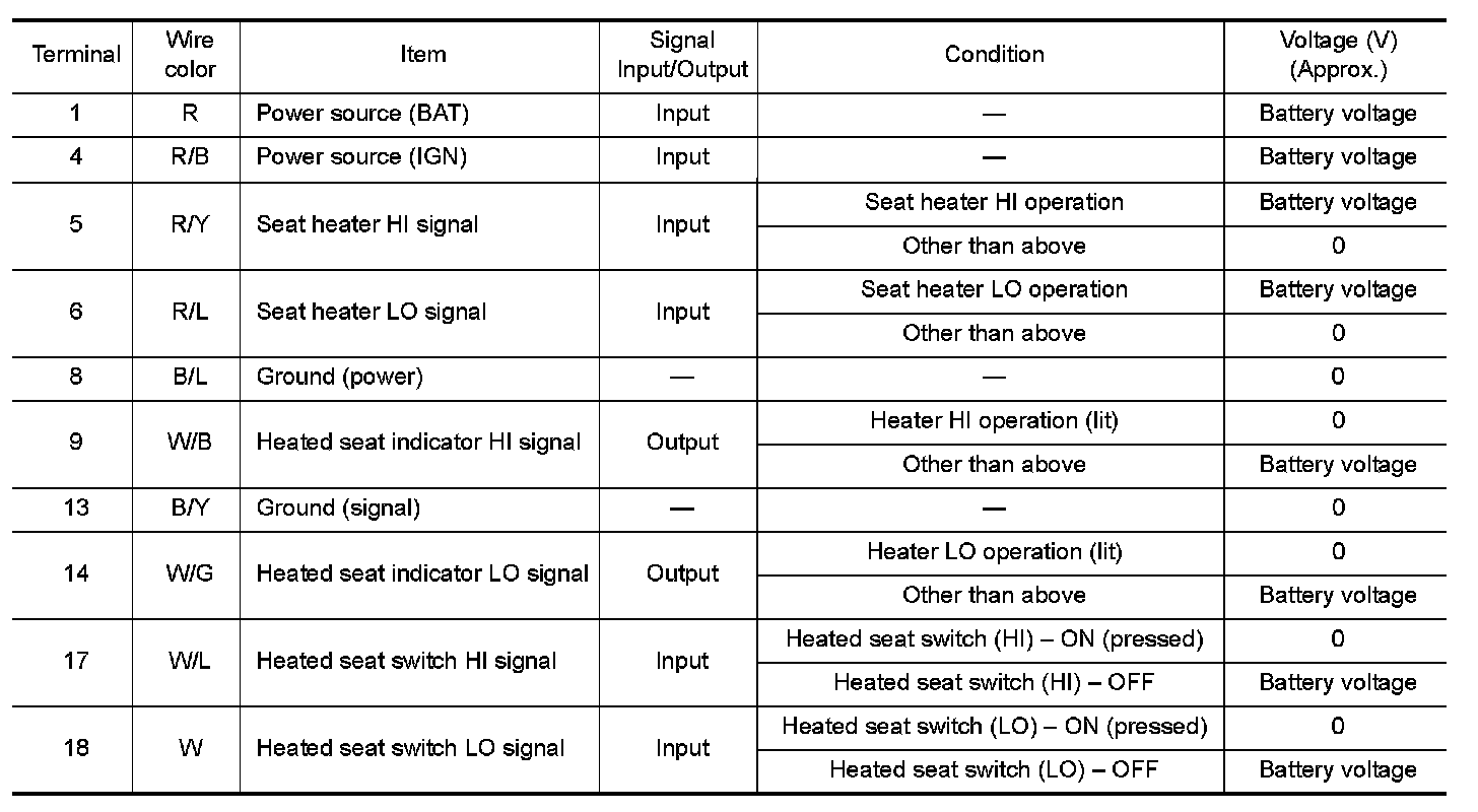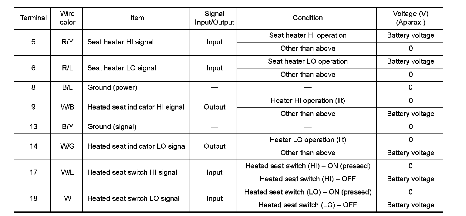 Terminal and Reference Value for Rear Seat Control Unit