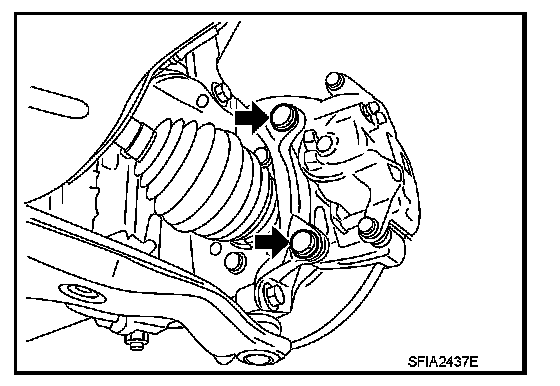Do not allow oil or any moisture on all contact surfaces between steering knuckle and caliper assembly, bolts, and washer.