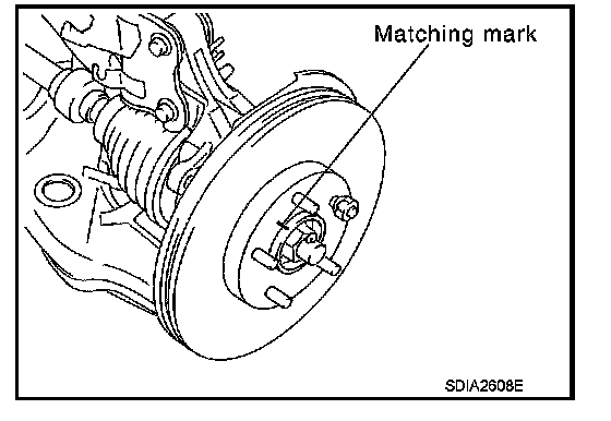 Put matching marks on wheel hub assembly and disc rotor, if it is necessary to remove disc rotor.