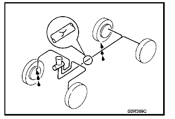 1. Check brake line (tubes and hoses) for cracks, deterioration or other damage. Replace any damaged parts.
