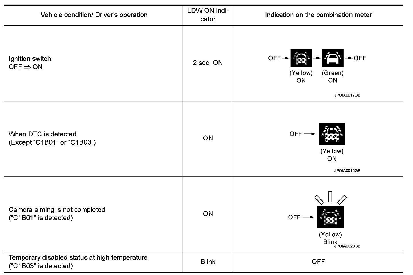 - LDW initial OFF - LDW function is still OFF when the ignition switch OFF ⇒ ON.
