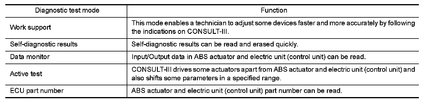 CONSULT-III can display each diagnostic item using the diagnostic test modes shown below.