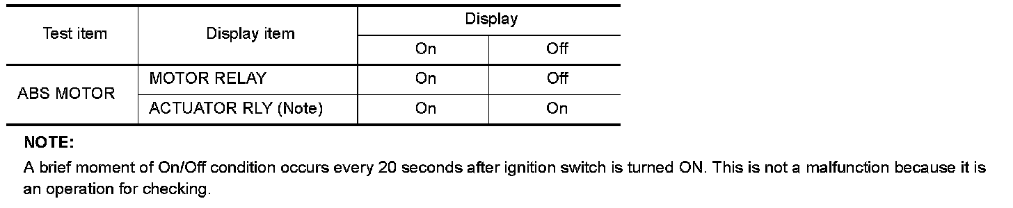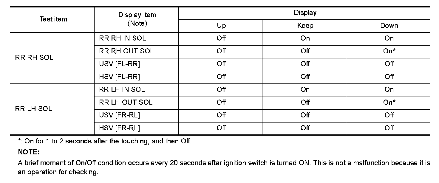 - When active test is performed while depressing the pedal, the pedal depression amount will change. This is normal. (Only solenoid valve and ABS motor.)