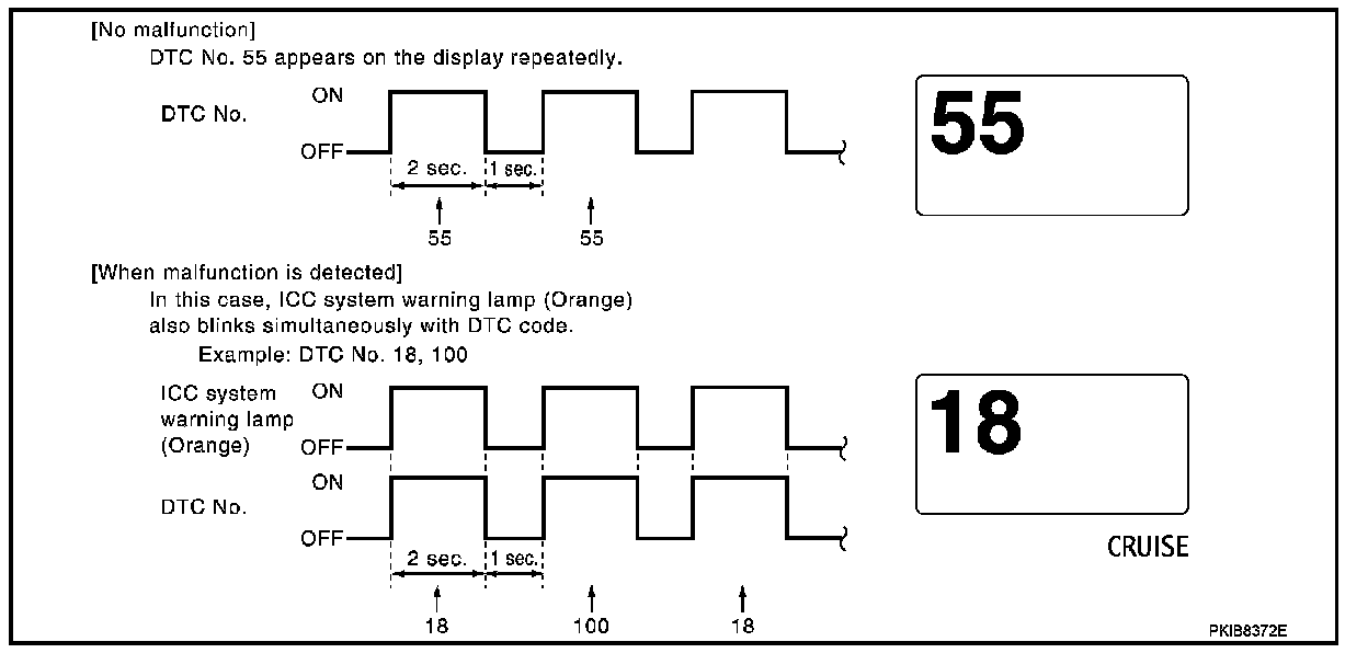 - 0: malfunction is detected at present (from malfunction detection to ignition switch OFF).