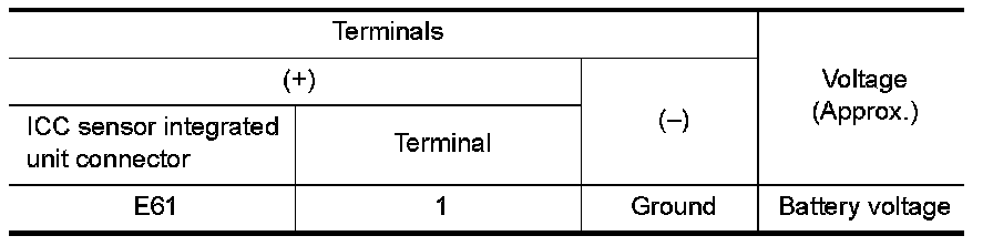 4. Check voltage between ICC sensor integrated unit harness connector and ground.