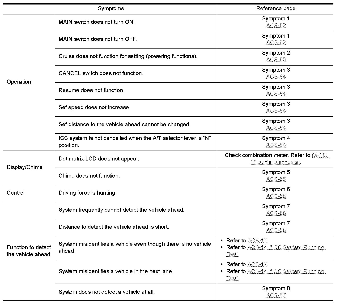 TROUBLE DIAGNOSIS FOR SYMPTOMS