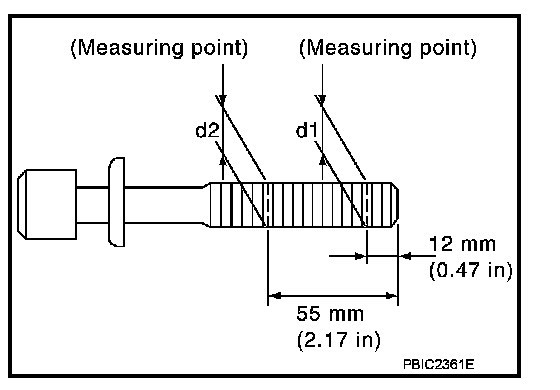 - Cylinder head bolts are tightened by plastic zone tightening method. Whenever the size difference between "d1" and "d2" exceeds the limit, replace them with new one.