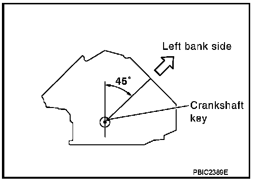 - Crankshaft key should line up with the left bank cylinder center line as shown in the figure.
