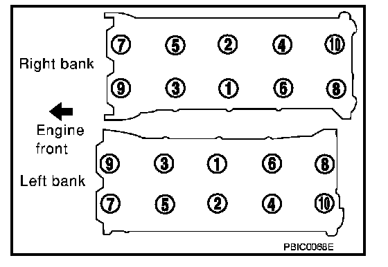 4. Remove cylinder head bolts in reverse order as shown in the figure to remove cylinder heads (right bank and left bank).