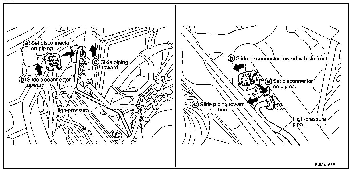 c. Slide A/C piping toward (or upward) vehicle front and disconnect it.
